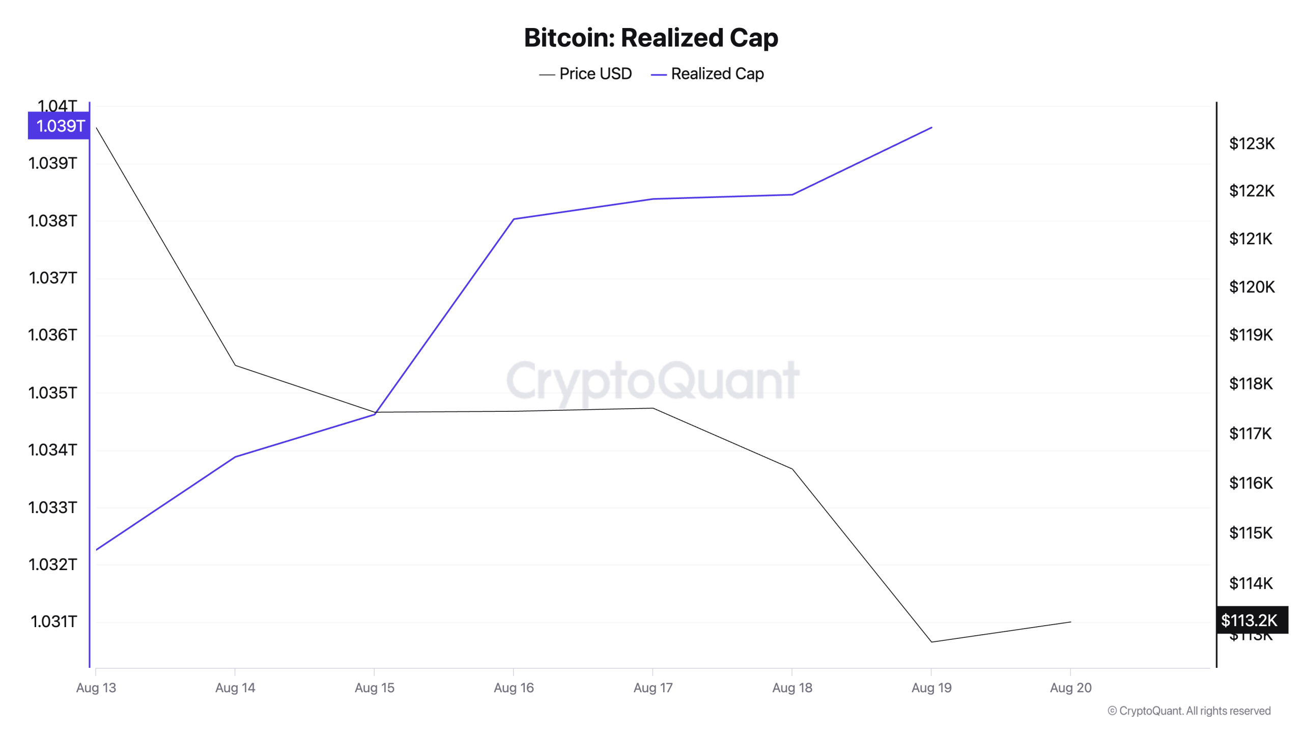 Why Bitcoin’s realized cap spiked as price fell to $112k