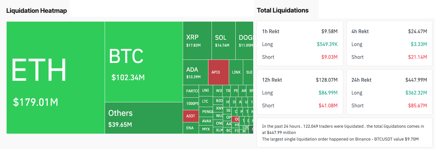 Market saw $449M in liquidations as ETH dropped nearly 6%